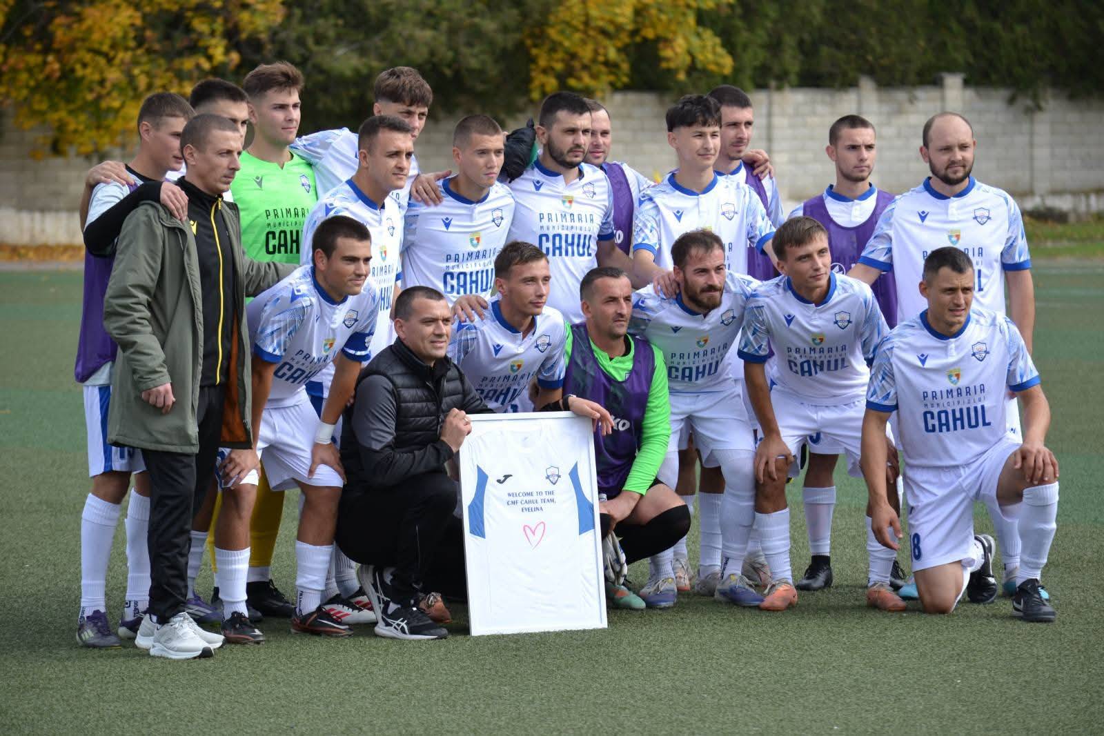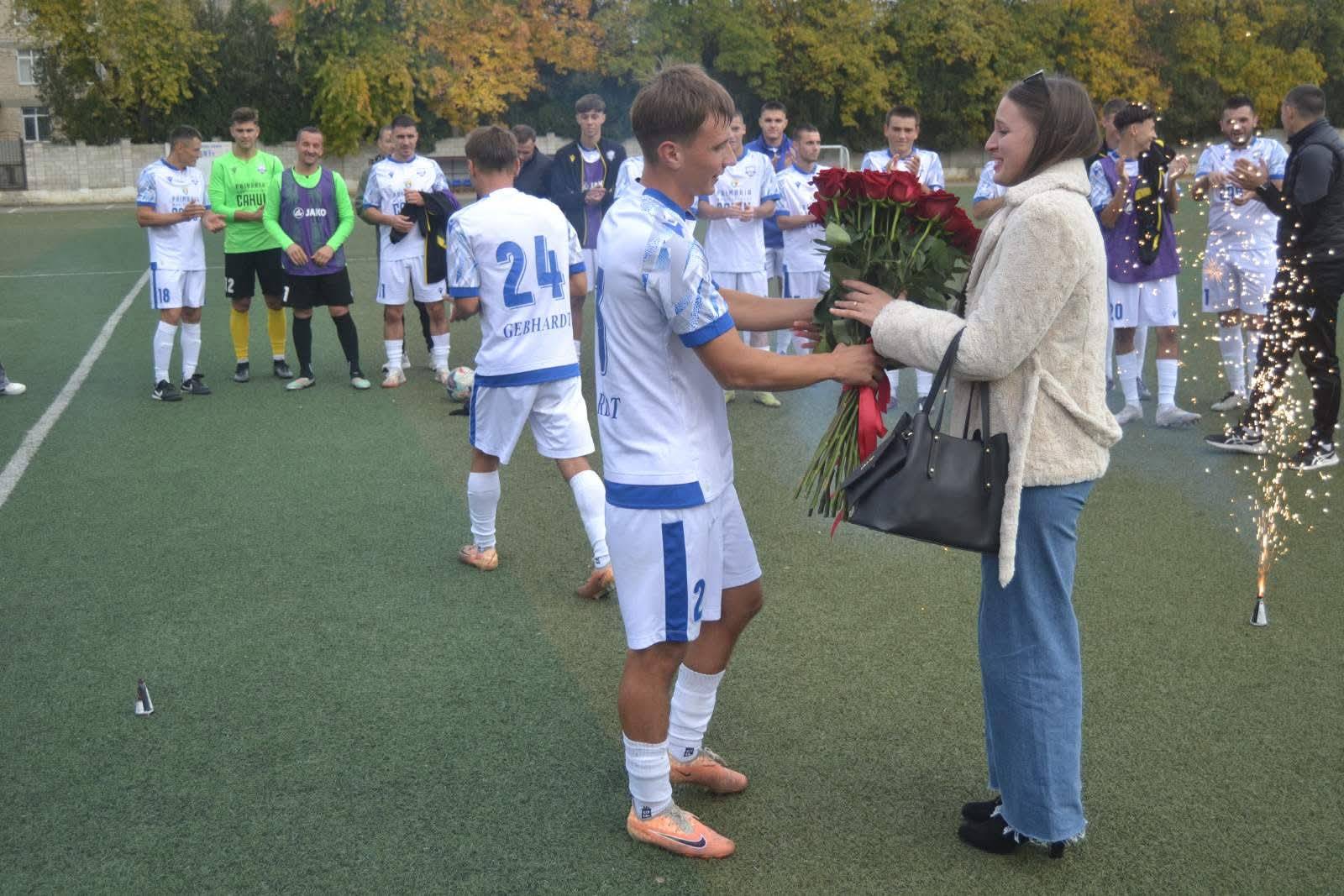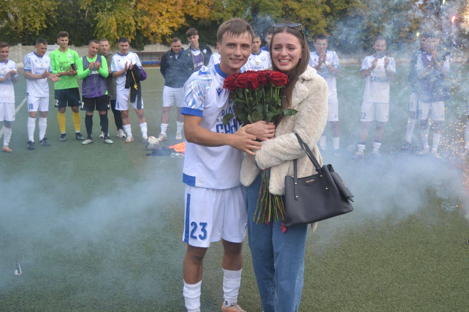 Înaintea fluierului de start, jucătorii Clubului Municipal de Fotbal Cahul l-au felicitat pe antrenorul principal, Vasile Mîță, cu ocazia nașterii fiicei sale, iar după meci, atmosfera s-a încărcat din nou de emoții — de data aceasta, de bucurie și iubire. Victor Ungureanu, jucător al echipei Clubului Municipal de Fotbal Cahul, i-a cerut mâna iubitei sale, Sorina.